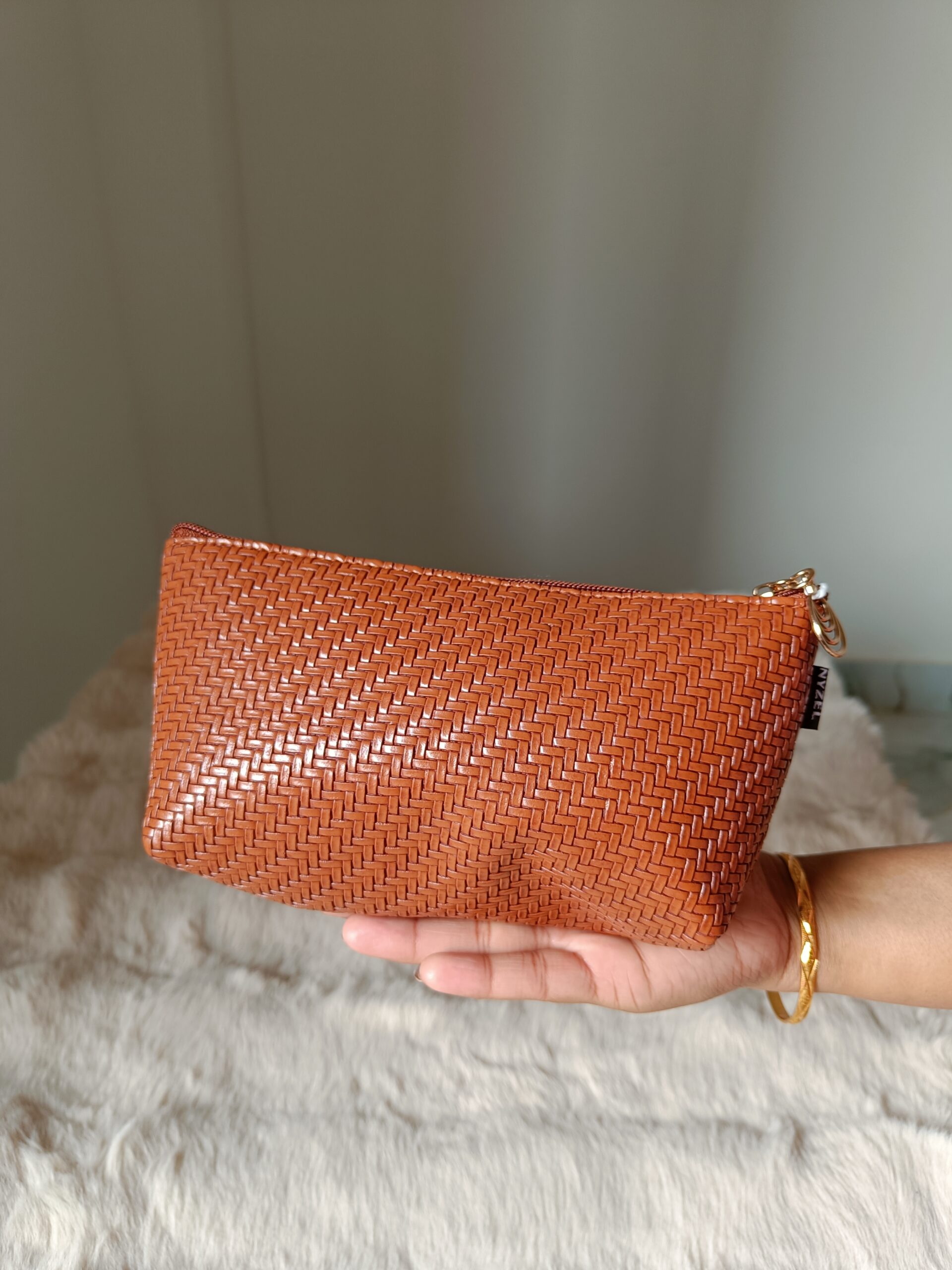 Brown Woven LeatherettePouch-