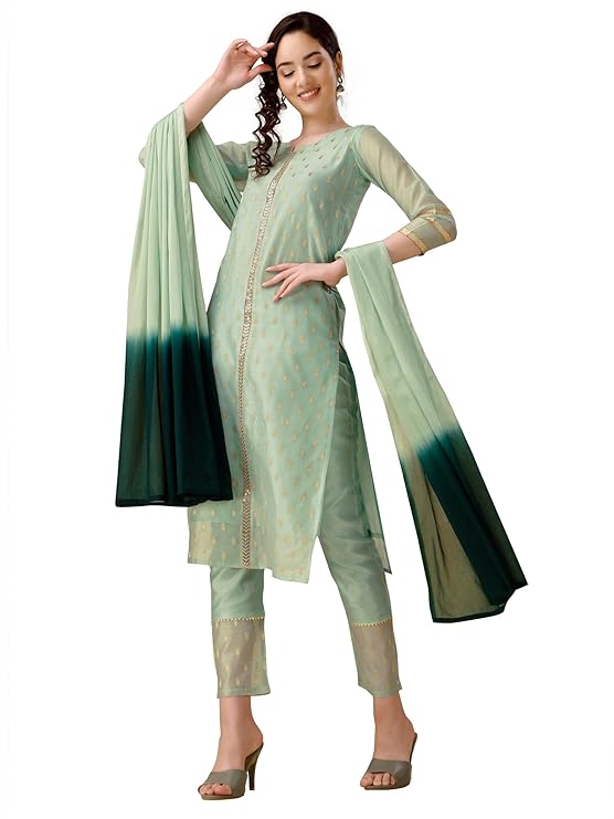 - Bottom Details || Fabric : Chanderi Silk | Color : Light Green| Pattern : Jacquard | Style:- Pant