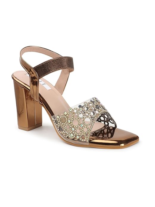 ELLE women’s Square Toe Block heel sandal with Ankle-strap