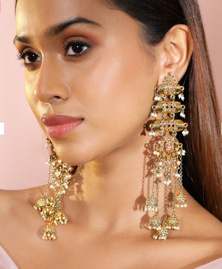 Kundan Studded Layered Shoulder Duster Jhumka Earrings