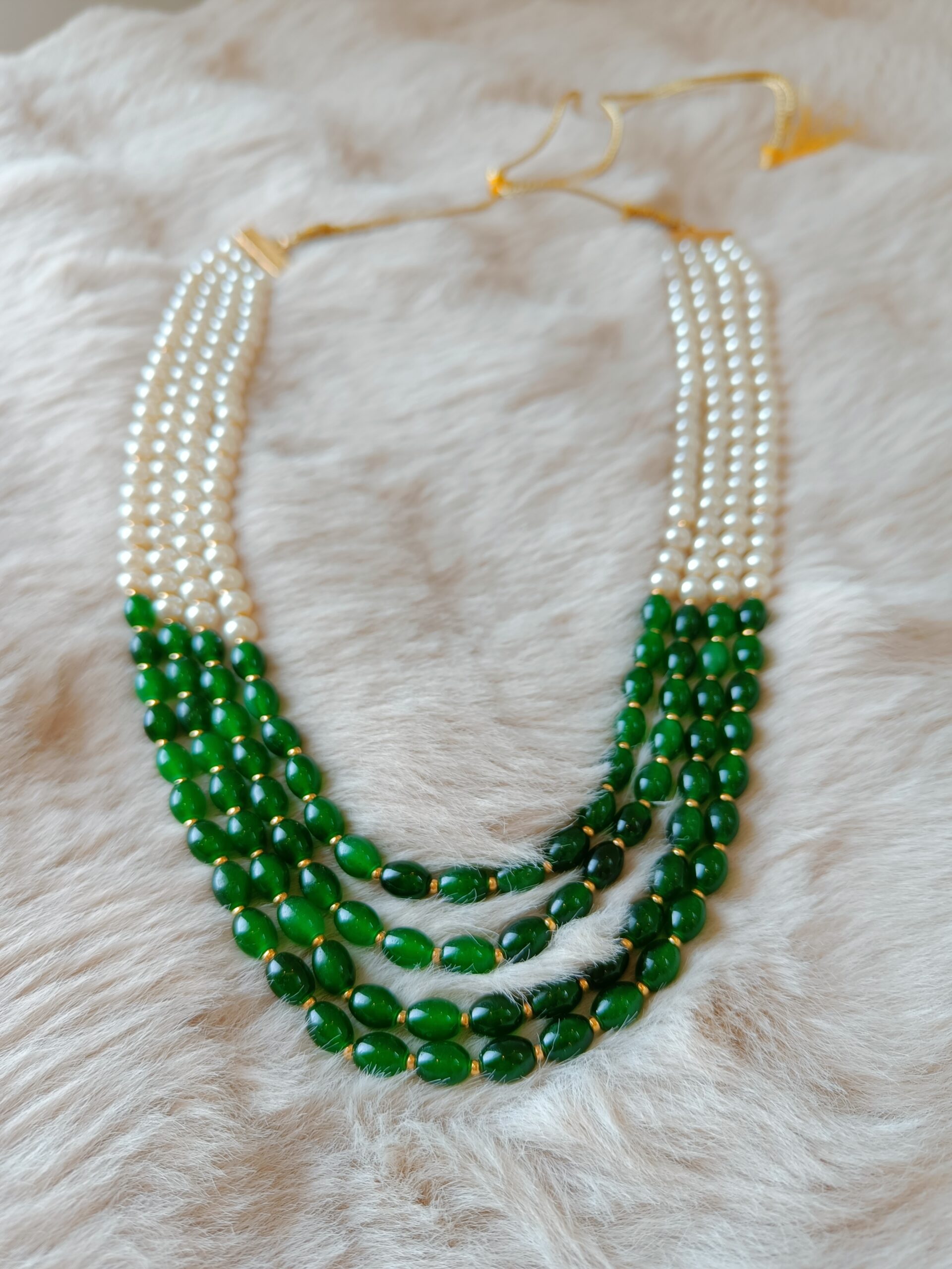 Multilayer Green and White Beads Necklace
