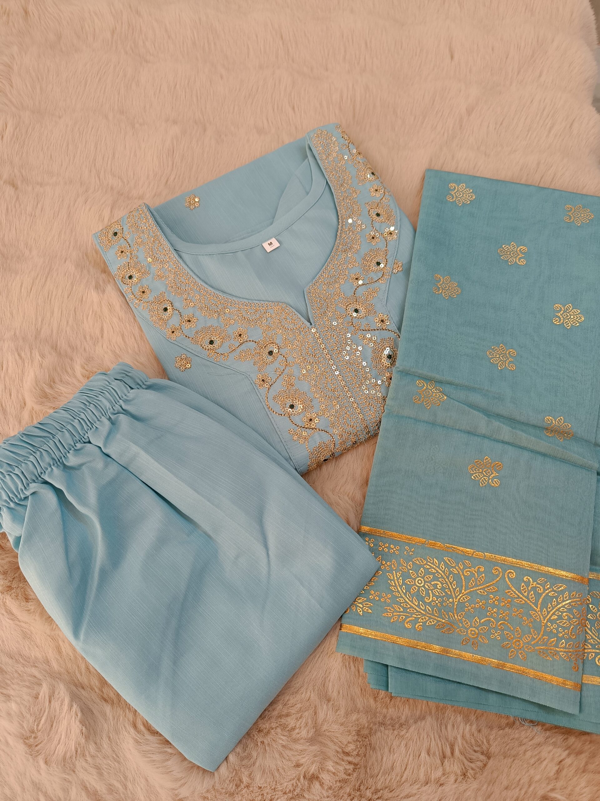 Sea Green Embroidered Straight Kurta Set